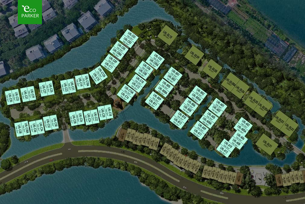 Tổng cộng có 62 căn biệt thự song lập tại Làng Hà Lan Ecopark, chi thành 3 nhánh chính, dãy A và B gần đường hơn có 12 căn mỗi nhánh, dãy C trong cùng có 38 căn.